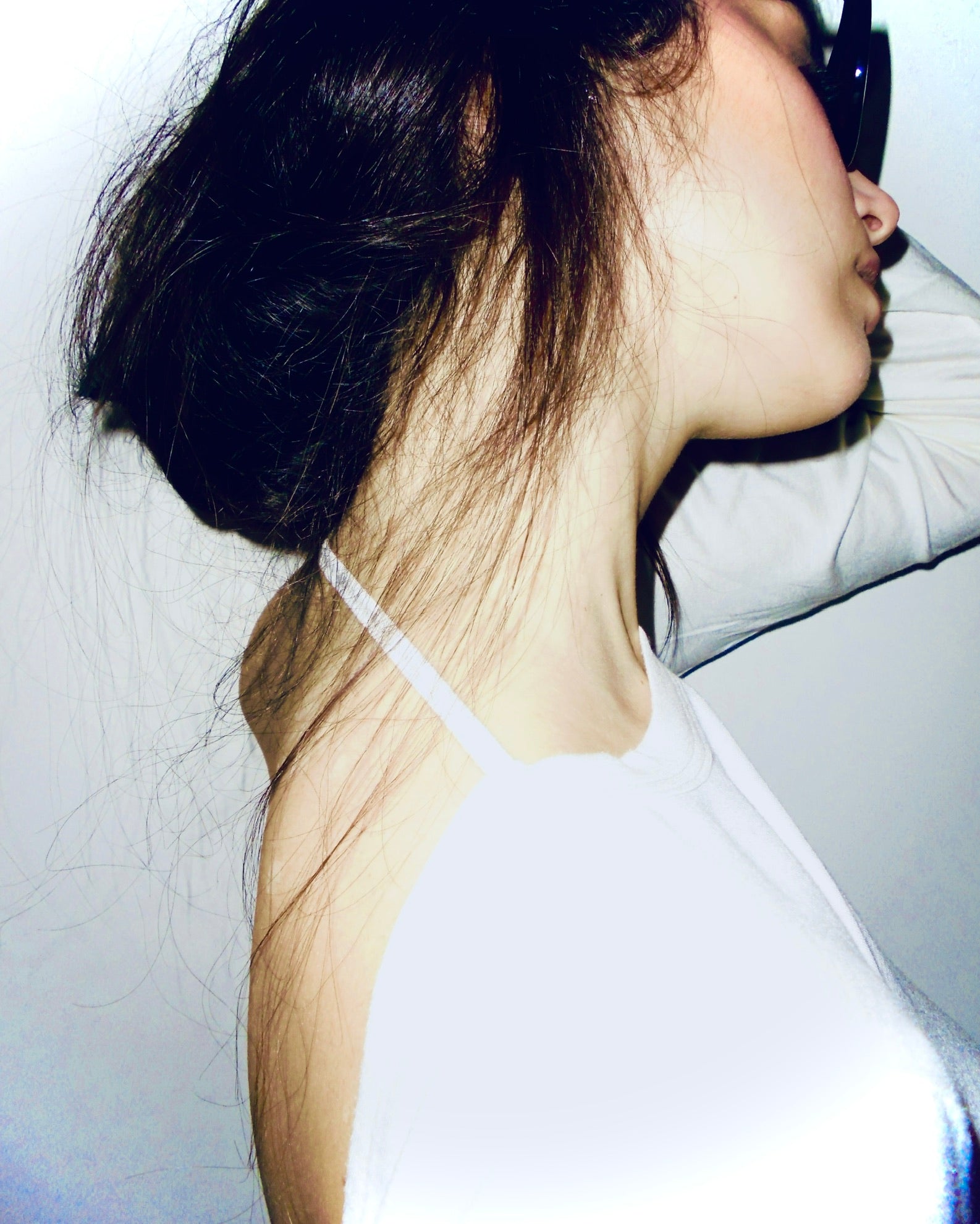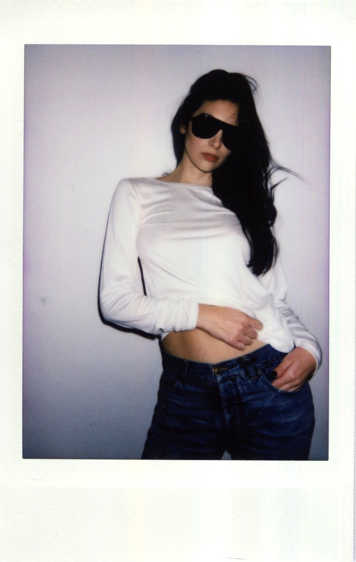 The white fabric for this piece is a different material than the our original white short sleeve Chiara tee shirt. The material is slightly more thin, slightly more sheer as seen in the photos. This white material is limited edition and will not be repeated as the material is dead stock.